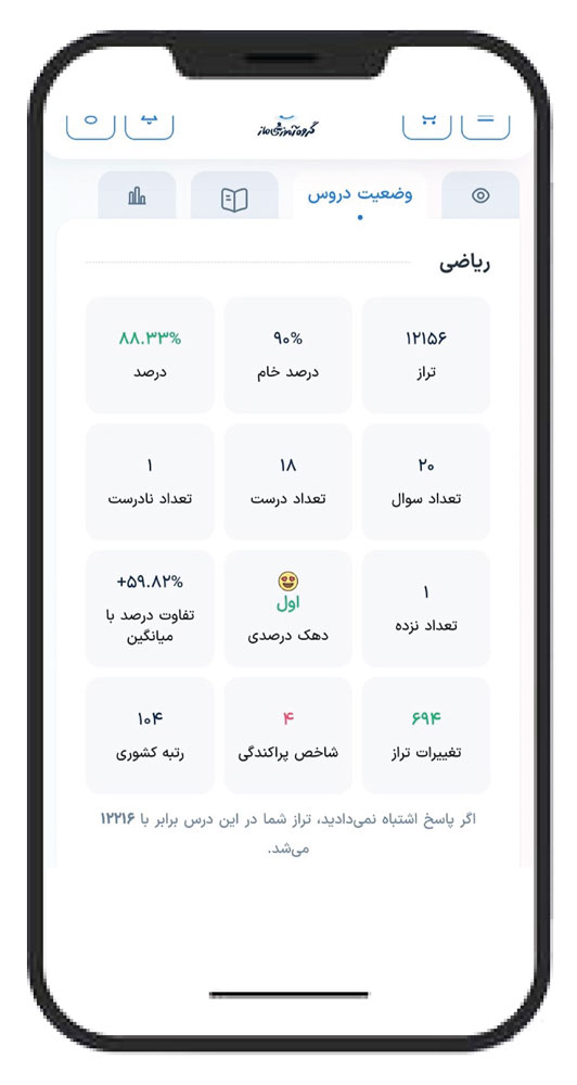 تراز نفرات برتر آزمونها، در اغلب مراحل بیشتر از 12000 شده و طبعا هرچقدر که تراز شما به این عدد نزدیکتر باشد، یعنی عملکرد شما در آن آزمون بهتر بوده است. به طور کلی، افراد با ترازهای بالاتر از 10000 در آزمونهای ماز، وضعیت مناسبی داشته و همه داوطلبان باید سعی کنند در هدفگذاری خود، از این حد تراز عبور کنند. توجه کنید که تراز آزمون، وضعیت شما را نسبت به بقیه داوطلبان سنجیده و درجه سختی آزمون مورد نظر، تاثیری در حداکثر تراز داوطلبان ندارد. علاوه بر اطلاعات گفته شده، در صفحه اول کارنامه وضعیت کلی شما نیز مشخص شده است. این بخش، به شما نشان میدهد که عملکرد شما در آزمون تا چه اندازه مطلوب بوده است. اطلاعات نشان داده شده در این بخش، توسط هوش مصنوعی و با تحلیل عملکرد شما در این آزمون و مقایسه آن با سایر آزمونها مشخص میشوند.