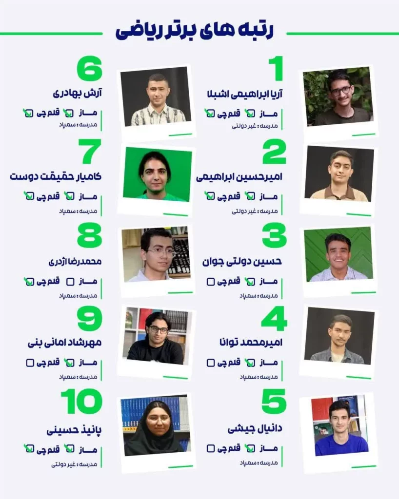 رتبه برترهای رشته ریاضی کنکور ۱۴۰۴ که به ماز اعتماد کردند.