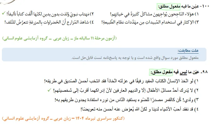 پیشبینی درک مطلب در عربی انسانی ۱۴۰۱