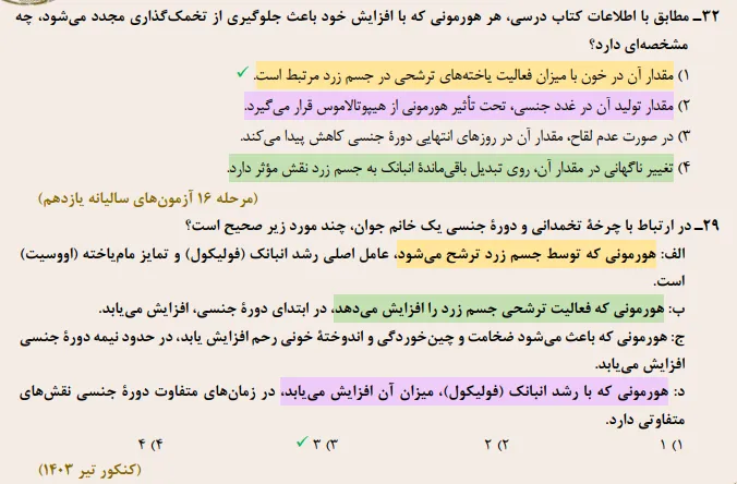 تطابق ماز با کنکور ۱۴۰۳ رشته تجربی